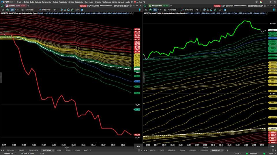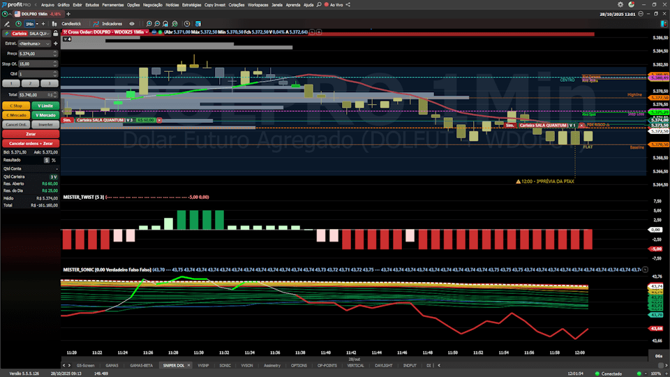 Nossos algoritmos exclusivos processam grandes volumes de dados de mercado para indicar, em tempo real, a direção predominante que os Instrumentos (DOL/IND) estão tomando. Você saberá com maior precisão onde está a pressão de compra ou de venda, permitindo que suas decisões estejam alinhadas com o Smart Money.